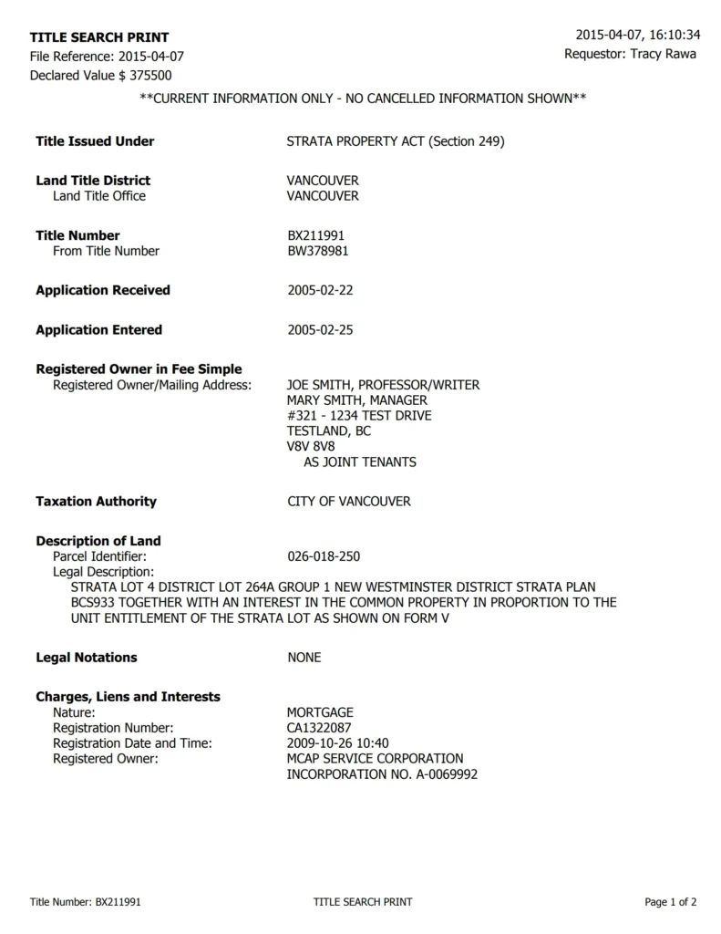 During the closing process, your lawyer or notary will conduct a title search through the BC Land Title and Survey Authority, to review the public records to identify known issues, such as existing mortgages, registered easements, or builders’ liens that need to be cleared before you take ownership.